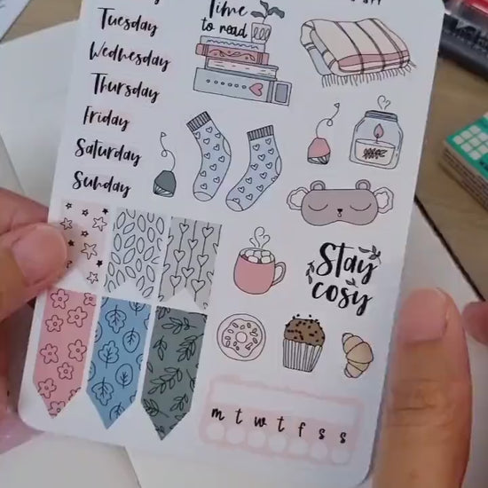 A collection of winter themed sticker sheet for decorating your journal and to remind you to stay cosy and warm!